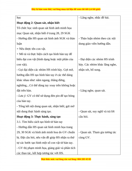 - Lưu ý: GV có thể sử dụng đèn pin để tạo bóng của bàn tay.
