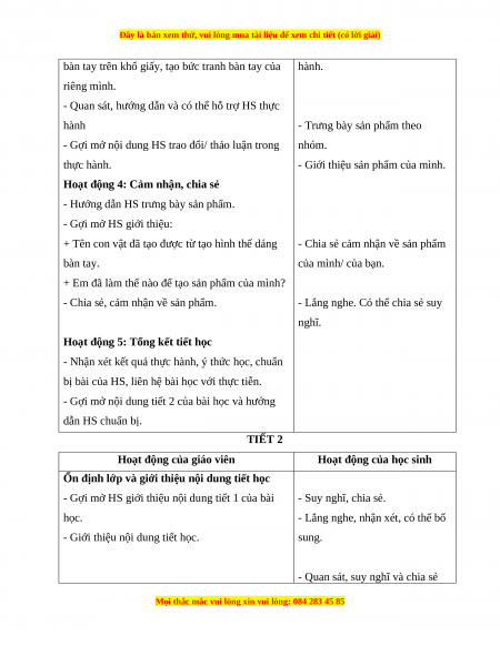 Giáo án Mĩ thuật 1 Cánh diều Bàn tay kì diệu
