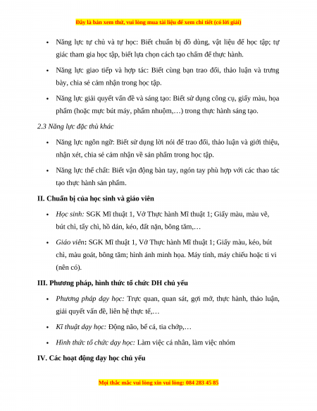 TÀI LIỆU BỘ BÁN CHẠY MÔN Mĩ thuật