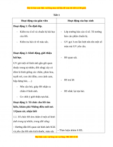 - Kiểm tra sĩ số và chuẩn bị bài học