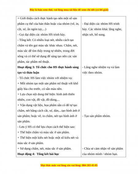 + Mỗi nhóm tạo một sản phẩm mĩ thuật với khổ