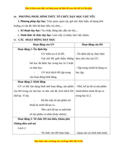 3. Hình thức tổ chức dạy học: Làm việc cá nhân, làm việc nhóm.