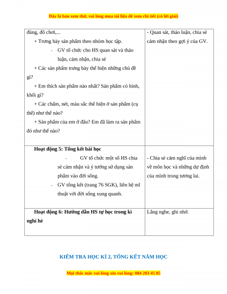 KIỂM TRA HỌC KÌ 2, TỔNG KẾT NĂM HỌC