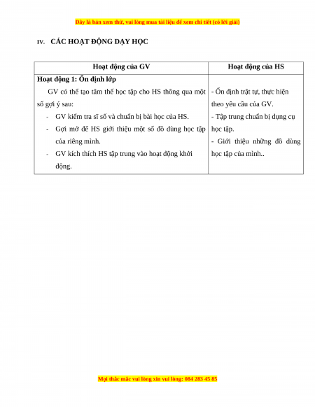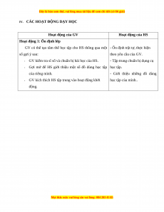 IV. CÁC HOẠT ĐỘNG DẠY HỌC