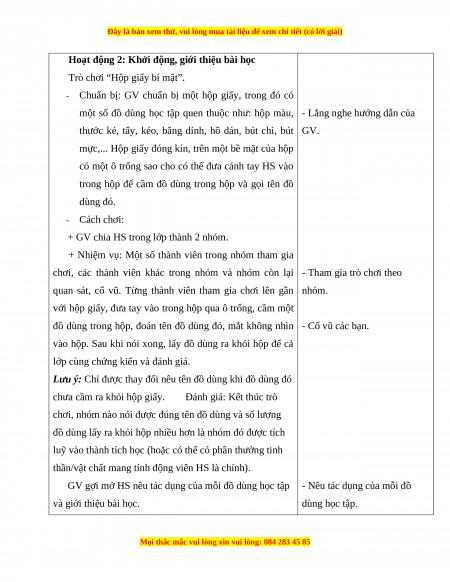 - Chuẩn bị: GV chuẩn bị một hộp giấy, trong đó có