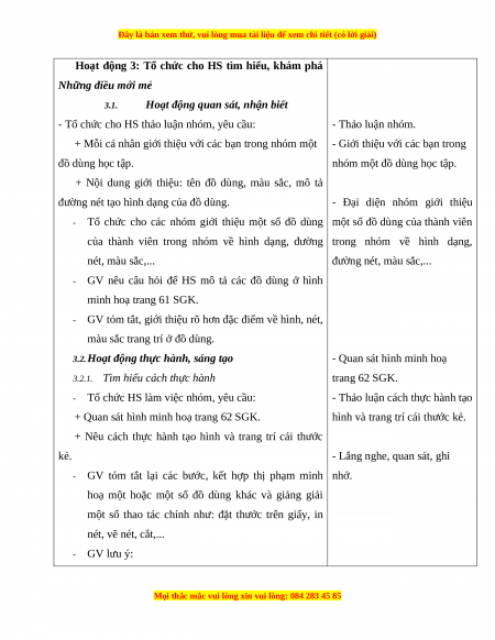 Giáo án Mĩ thuật 1 Cánh diều Đồ dùng học tập thân quen