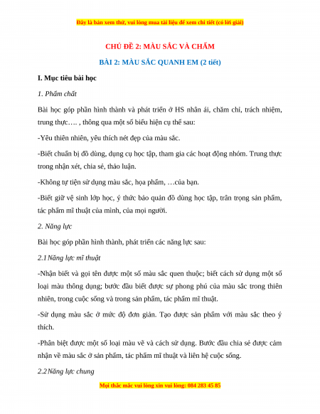 BÀI 2: MÀU SẮC QUANH EM (2 tiết)