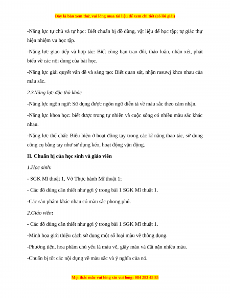 nhận về màu sắc ở sản phẩm, tác phẩm mĩ thuật và liên hệ cuộc sống. 2.2Năng lực chung