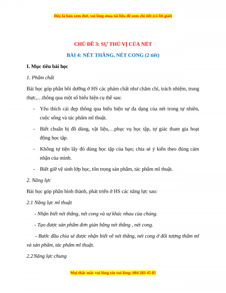 BÀI 4: NÉT THẲNG, NÉT CONG (2 tiết)
