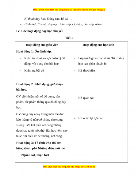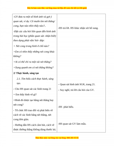 Giáo án Mĩ thuật 1 Cánh diều Nét thẳng, nét cong