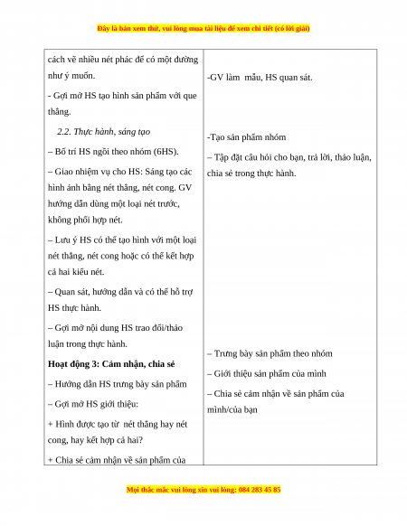 - Bước đầu chia sẻ được nhận biết về nét thẳng, nét cong ở đối tượng thẩm mĩ