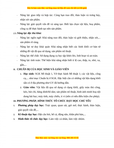 Phương pháp dạy học: Trực quan, quan sát, gợi mở, thực hành, thảo luận, giải quyết vấn đề,... 2.