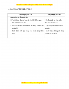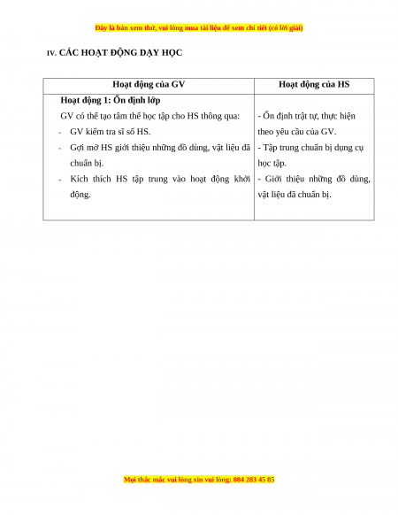 IV. CÁC HOẠT ĐỘNG DẠY HỌC