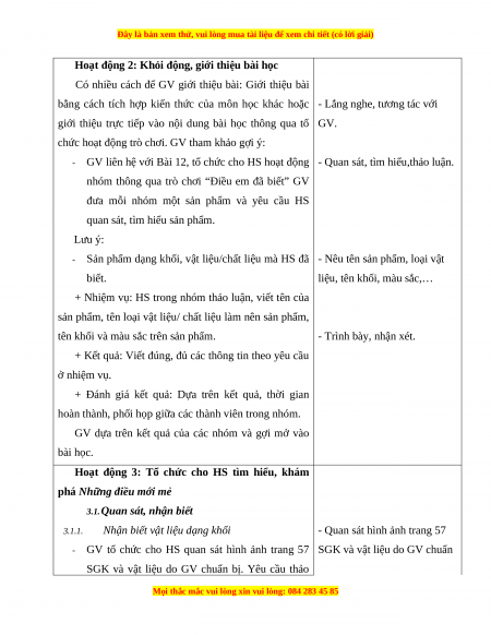 cụ,... như mục Chuẩn bị ở SGK. Đặc biệt cần có những vật liệu dạng khối