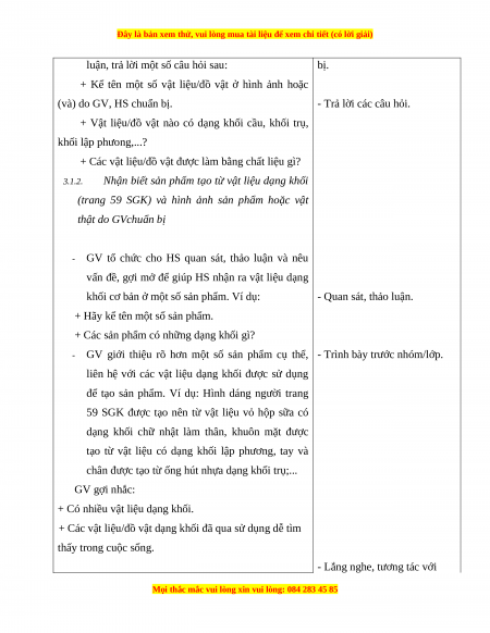 3.1.2. Nhận biết sản phấm tạo từ vật liệu dạng khối