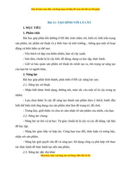 Bài 11: TẠO HÌNH VỚI LÁ CÂY I. MỤC TIÊU 1. Phẩm chất
