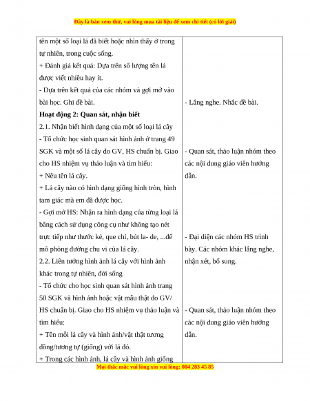 SGK và một số lá cây do GV, HS chuẩn bị. Giao