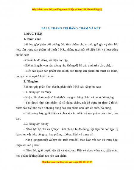 BÀI 7: TRANG TRÍ BẰNG CHẤM VÀ NÉT I. MỤC TIÊU 1. Phẩm chất