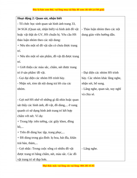 Giáo án Mĩ thuật 1 Cánh diều Trang trí bằng chấm và nét