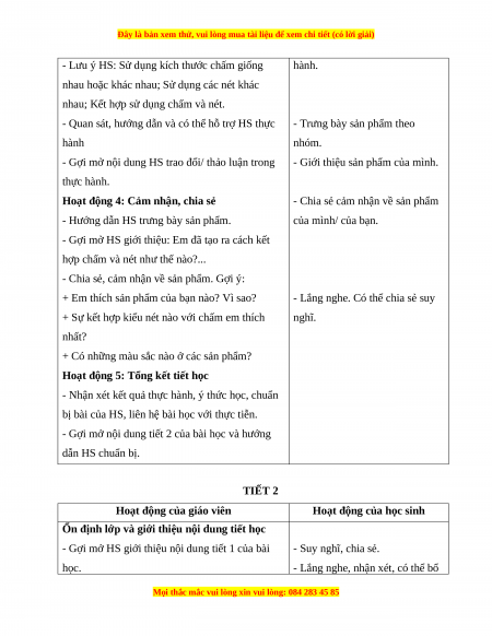 + Giới thiệu các màu sắc, chấm, nét được trang