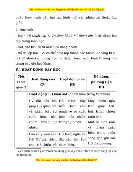 Hoạt động 1. Quan sát (chấm màu trong tự nhiên)