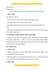 CHỦ ĐỀ 6: SÁNG TẠO TỪ NHỮNG KHỐI CƠ BẢN I. MỤC TIÊU Sau bài học, HS sẽ: