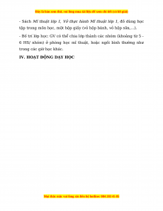 6 HS/ nhóm) ở phòng học mĩ thuật, hoặc ngồi bình thường như