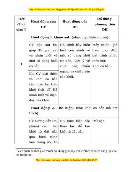 1 Việc phân bố thời gian ở mỗi nội dung giáo dục căn cứ theo sĩ số và năng lực của HS trong lớp.