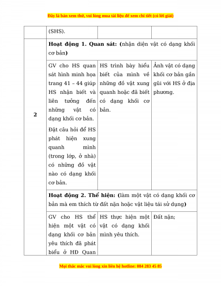 Hoạt động 1. Quan sát: (nhận diện khối cơ bản)
