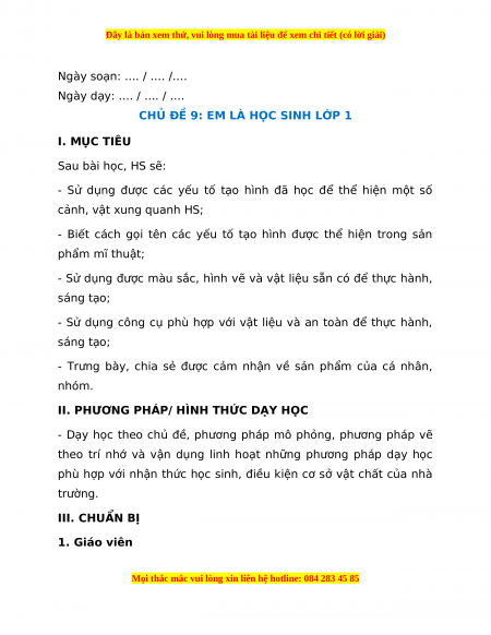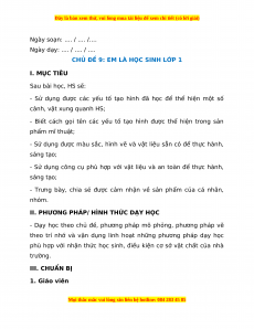 CHỦ ĐỀ 9: EM LÀ HỌC SINH LỚP 1 I. MỤC TIÊU Sau bài học, HS sẽ: