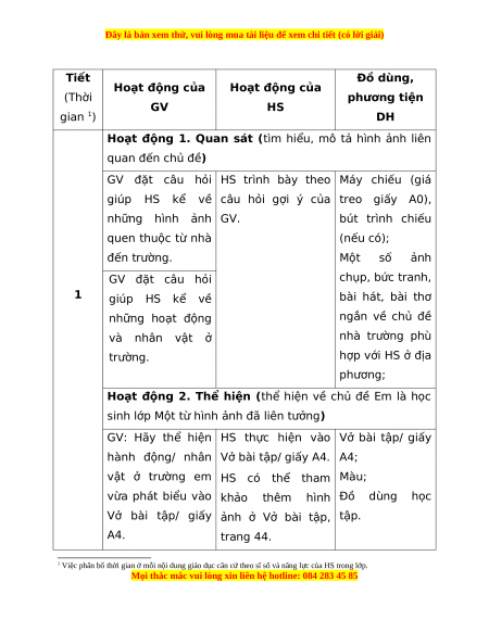 1 Việc phân bố thời gian ở mỗi nội dung giáo dục căn cứ theo sĩ số và năng lực của HS trong lớp.