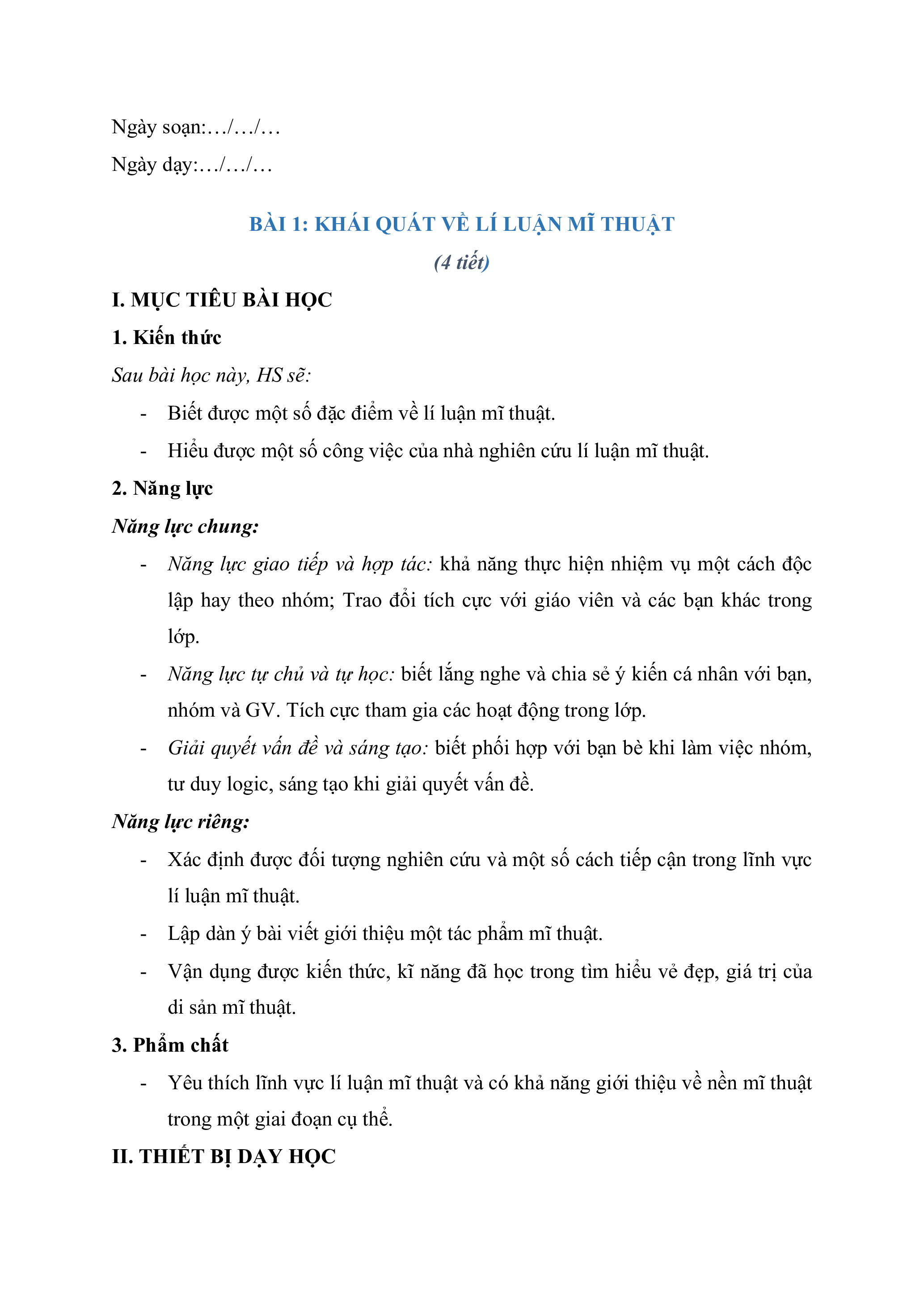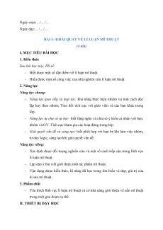 BÀI 1: KHÁI QUÁT VỀ LÍ LUẬN MĨ THUẬT (4 tiết) I. MỤC TIÊU BÀI HỌC 1. Kiến thức