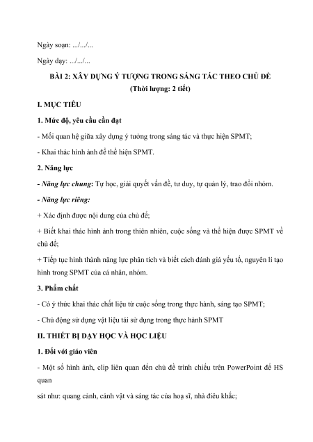 BÀI 2: XÂY DỰNG Ý TƯỢNG TRONG SÁNG TÁC THEO CHỦ ĐỀ