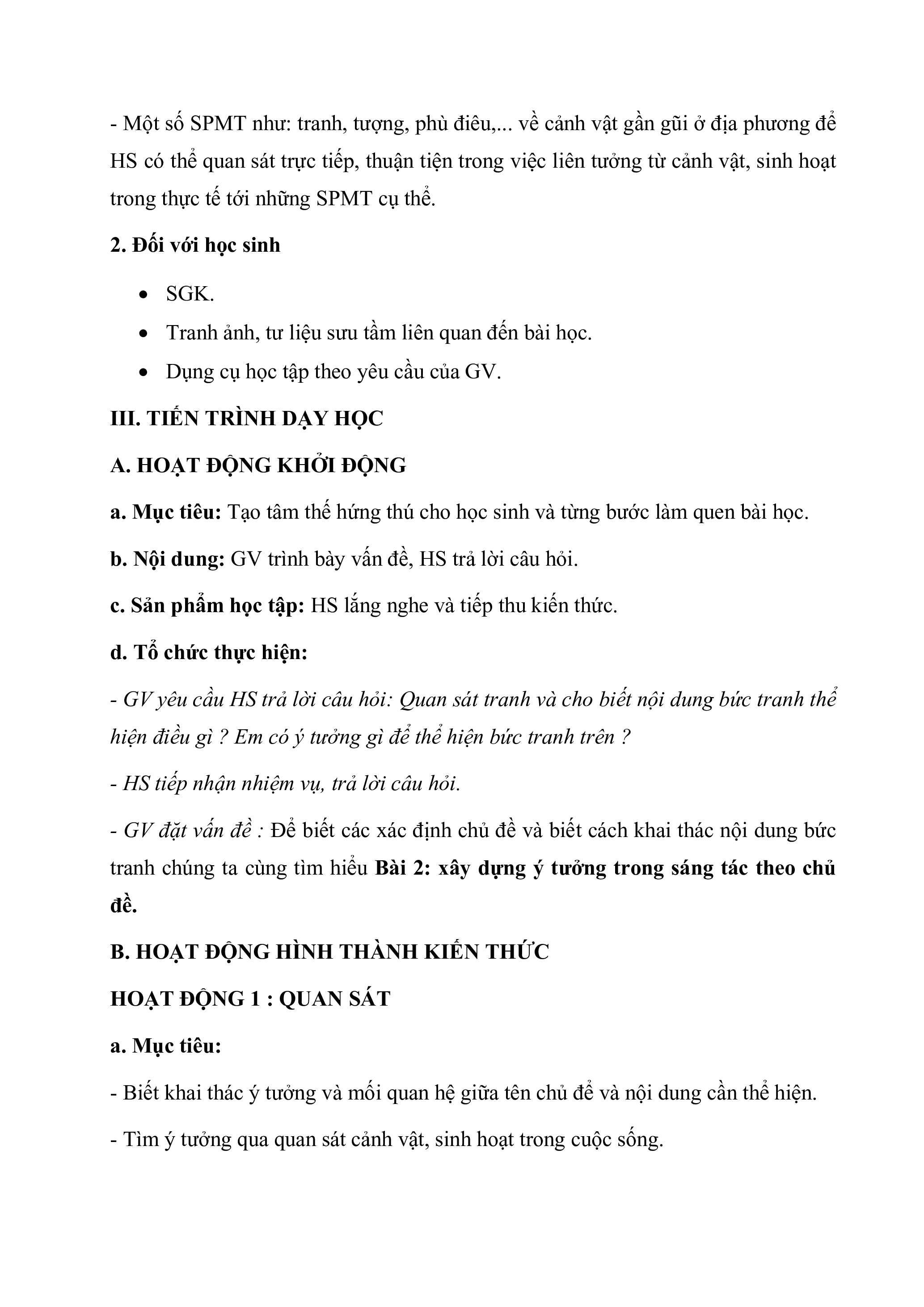 - Tìm ý tưởng qua quan sát cảnh vật, sinh hoạt trong cuộc sống. b. Nội dung: