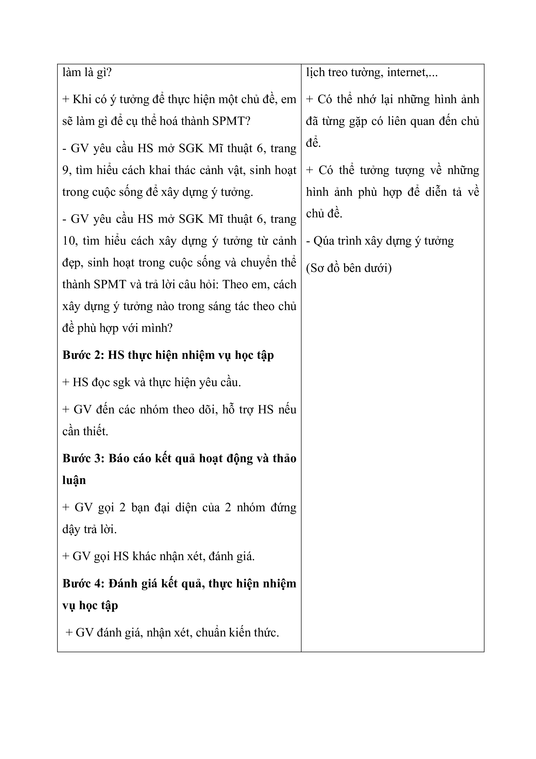 học cơ sở để thể hiện ý tưởng của mình theo + Có thể quan sát cảnh vật, sinh