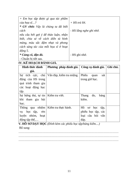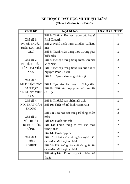 KẾ HOẠCH DẠY HỌC MĨ THUẬT LỚP 8