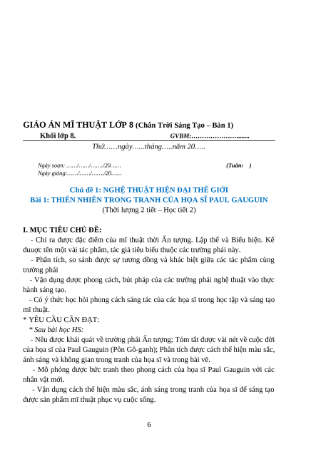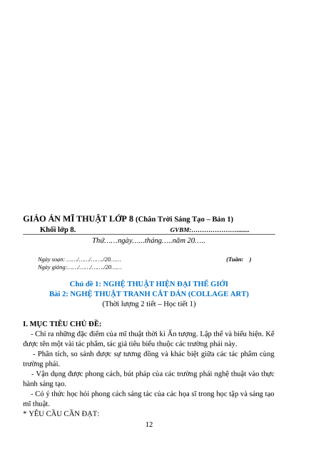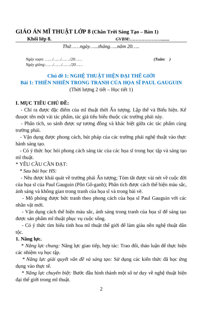GIÁO ÁN MĨ THUẬT LỚP 8 (Chân Trời Sáng Tạo – Bản 1)