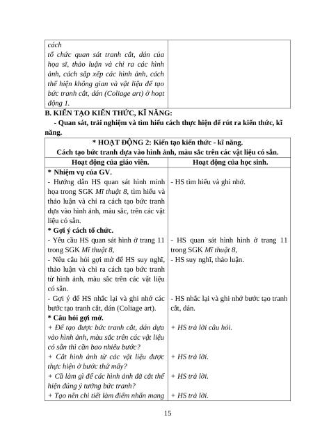 B. KIẾN TẠO KIẾN THỨC, KĨ NĂNG: