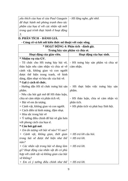 tranh của họa sĩ Paul Gauguin ở hoạt động 1.