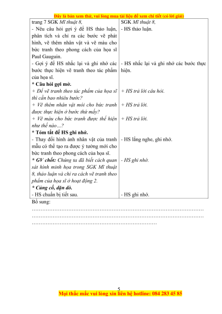 họa sĩ Paul Gauguin ở trang 6 trong Mĩ thuật 8, trả lời câu hỏi.
