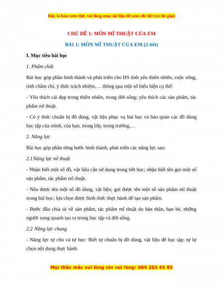 CHỦ ĐỀ 1: MÔN MĨ THUẬT CỦA EM