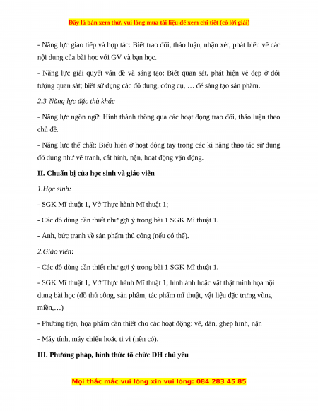 - II. CHUẨN BỊ CỦA HỌC SINH VÀ GIÁO VIÊN