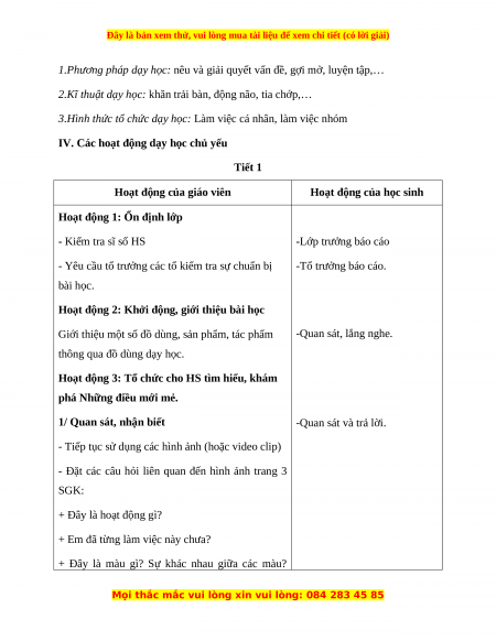 IV. Các hoạt động dạy học chủ yếu Tiết 1