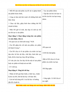 - Tổ chức cho HS trao đổi về các sản phẩm phần