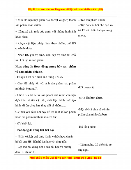 - - Quan sát, chia sẻ, nhận xét sản phẩm của bạn.
