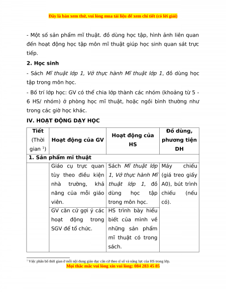 hoạt động trong biết của mình về SGV để tổ chức. những sản phẩm mĩ thuật có trong sách.