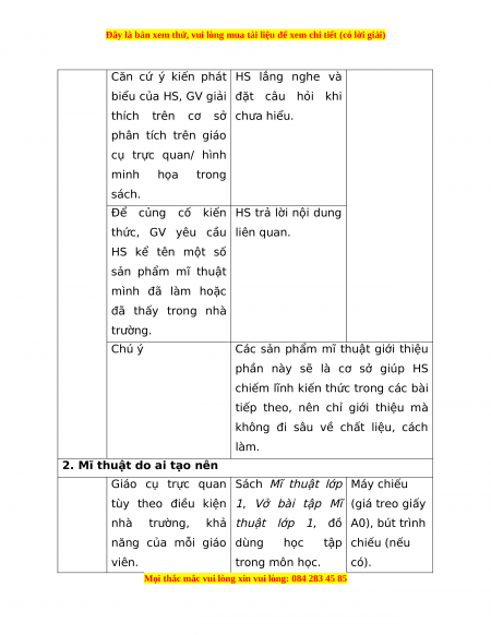 Giáo cụ trực quan Sách Mĩ thuật lớp Máy chiếu