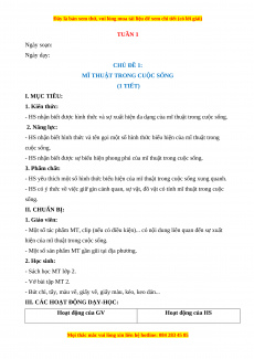 MĨ THUẬT TRONG CUỘC SỐNG (1 TIẾT) I. MỤC TIÊU: 1. Kiến thức: