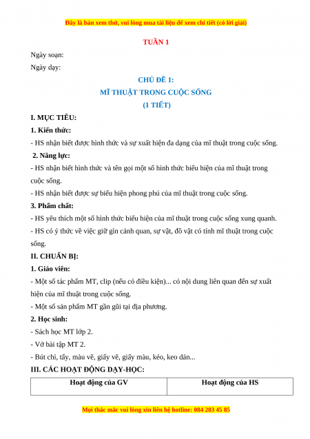 - HS nhận biết được hình thức và sự xuất hiện đa dạng của mĩ thuật trong cuộc sống. 2. Năng lực: