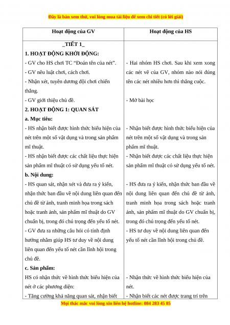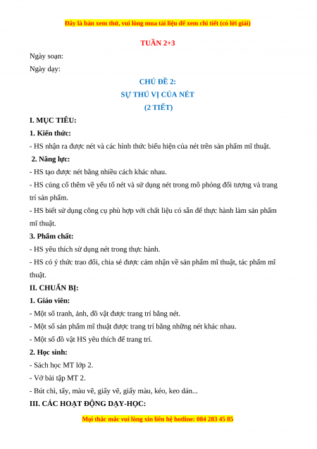 SỰ THÚ VỊ CỦA NÉT (2 TIẾT) I. MỤC TIÊU: 1. Kiến thức: